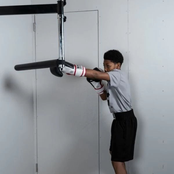 TITLE Rapid-Reflex Boxing Bar – the world-wide phenomenon that is sweeping boxing, combat sports, MMA, fitness athletes and more for developing pin-point precision, lighting fast punching speed and cat-quick reflexes. The wall mounted Rapid-Reflex Boxing is ideal for athletes of all sizes and skill levels, from youth to super heavyweight and beginner to world class. The spinning rapid-reflex bar is constructed of padded stainless steel with sealed encased precision bearings, for true, uninhibited revolutions. The unit is manufactured with industrial powder-coated and stainless steel for professional gym or home use. With the Rapid-Reflex Boxing Bar you can perfect your punching speed, precision, slipping, blocking, bob and weave, defense jabs, power punches, combinations, and more, instantaneously. Simply assemble and mount onto a solid wood stud or masonry wall and you’re ready for action. Once installed the bar easily adjusts up and down 16” for different size users. Comes complete with a spring loaded pop-pin that allows you to swing the unit against the wall when not in use to keep it out of the way. Minor assembly needed.
