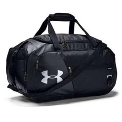 UA Storm technology delivers an element-battling, highly water-resistant finish. Tough, abrasion-resistant bottom and side panels. 2 large front zippered organization pockets. Removable, padded, HeatGear® shoulder strap for total comfort. Padded top grab handle. Large vented pocket for laundry or shoes (fits pair up to size 16) and internal slip pockets for organization. D-ring for added attachment point. Dimensions when full: 14″W x 29.5″H x 14.6″L. Volume: 5,187 Cubic In. / 85 L.